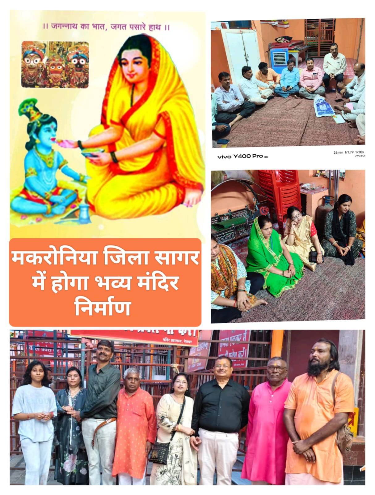 मध्य प्रदेश जिला सागर के मकरोनिया में निर्माण होगा भव्य भगवान जगन्नाथ जी, श्री बलदाऊ,माता सुभद्रा एवं भक्त शिरोमणि माता कर्मा देवी जी का मंदिर