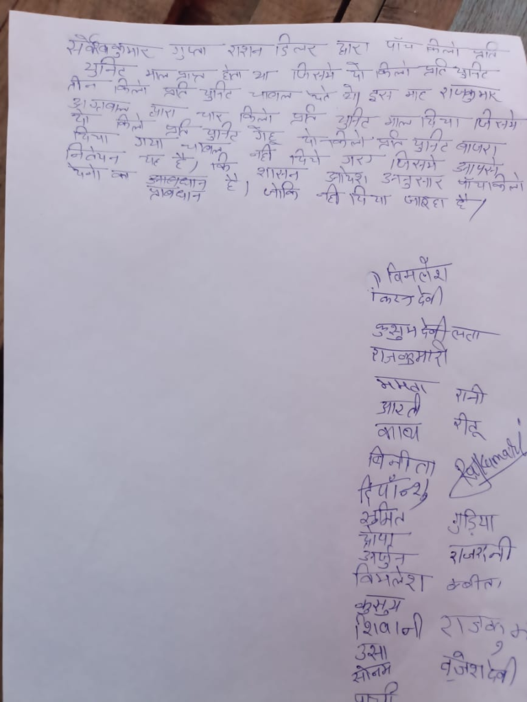 महिलाओं ने लिखित शिकायत में राशन डीलर राजकुमार अग्रवाल पर सीधा आरोप लगाते हुए । एसडीएम को लिखित ािकायत की तो कुछ महिलाओं ने सीएम से शिकायत करने की बात भी कही है।