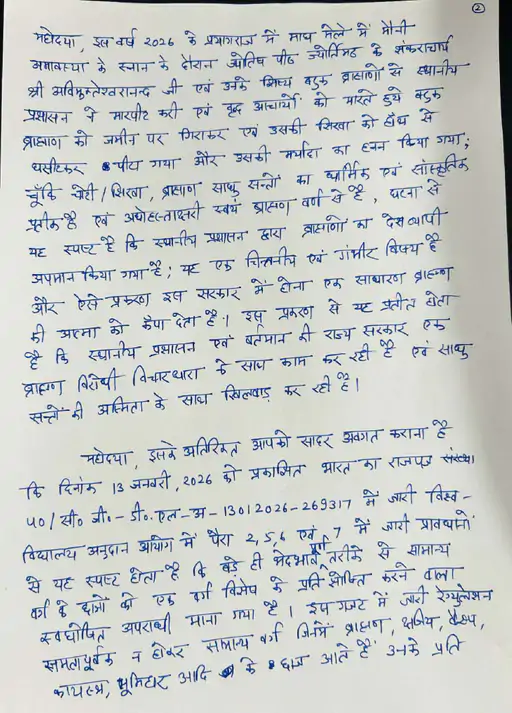 इस साल प्रयागराज के माघ मेले में मौनी अमावस्या के दिन शंकराचार्य अविमुक्तेश्वरानंद और उनके शिष्य बटुक ब्राह्मणों के साथ प्रशासन ने मारपीट की। बुजुर्ग आचार्यों को भी पीटा गया, बटुक ब्राह्मणों को जमीन पर गिराकर उनकी चोटी पकड़कर घसीटा गया। यह उनकी इज्जत का अपमान है।