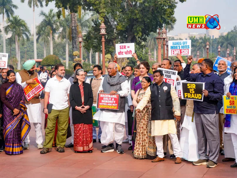 मंगलवार की सुबह संसद के मकर द्वार के बाहर भारी संख्या में विपक्षी सांसद जुटे. वे बैनर और पोस्टर लिए हुए थे और SIR को रोकने की मांग कर रहे थे. पूरे प्रदर्शन का मकसद था सरकार पर इस मुद्दे पर बहस का दबाव बनाना.