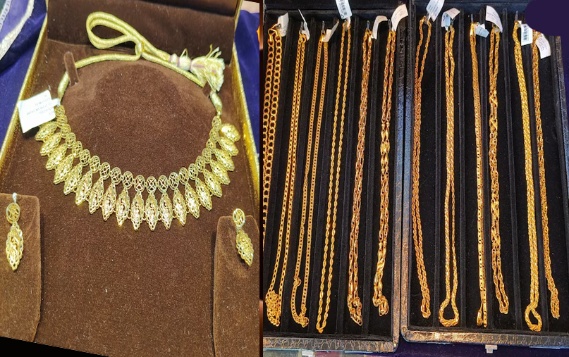 खुर्जा। सर्राफा व्यापारियों ने सोने और चांदी की बेहद शानदार और खूबसूरत ज्वैलरी का विकल्प खोजा हैए जिसे आप सस्ते में खरीद सकते हैंण् इसकी कीमत मात्र 55 हजार से शुरू हुई है और दो लाख रुपए तक हैण् देखने में यह ज्वैलरी बिल्कुल भी हल्की नहीं लगती हैण्