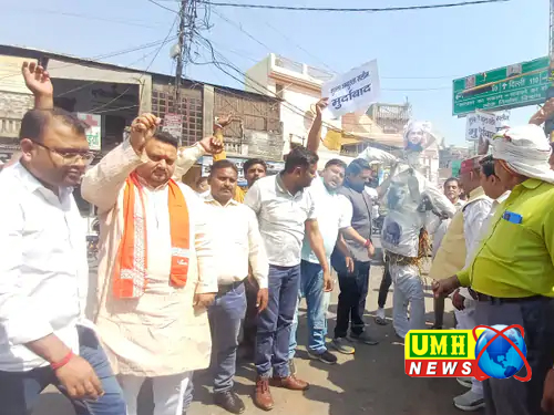 खुर्जा : CM योगी की मां पर अभद्र टिप्पणी, भाजपा का प्रदर्शन, प्रदर्शन, पुतला दहन