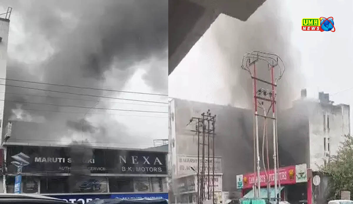 लखनऊ में कार के सर्विस सेंटर में लगी भीषण आग