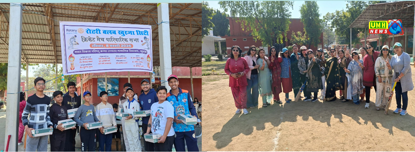 रोटरी क्लब खुर्जा सिटी परिवार कामित्रता पूर्ण मैच रोटरी सदस्यों के बीच रोटरी एन्ने व रोट्रैकट क्लब इंटरेक्ट क्लब के भारत विकास परिषद स्कूल में खेला गया मित्रता पूर्ण मैच में सचिव 11 की टीम विजय रही
