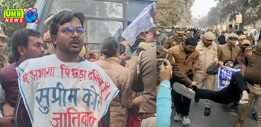 करीब 50 अभ्यर्थी सोमवार सुबह 11 बजे डिप्टी सीएम का आवास घेरने के लिए सपा कार्यालय के बाहर जुटे। प्रदर्शनकारी ‘मैं अभागा पिछड़ा, दलित हूं’ और ‘सुप्रीम कोर्ट जातिवादी है’ जैसे स्लोगन लिखे बैनर ओढ़कर पहुंचे थे।