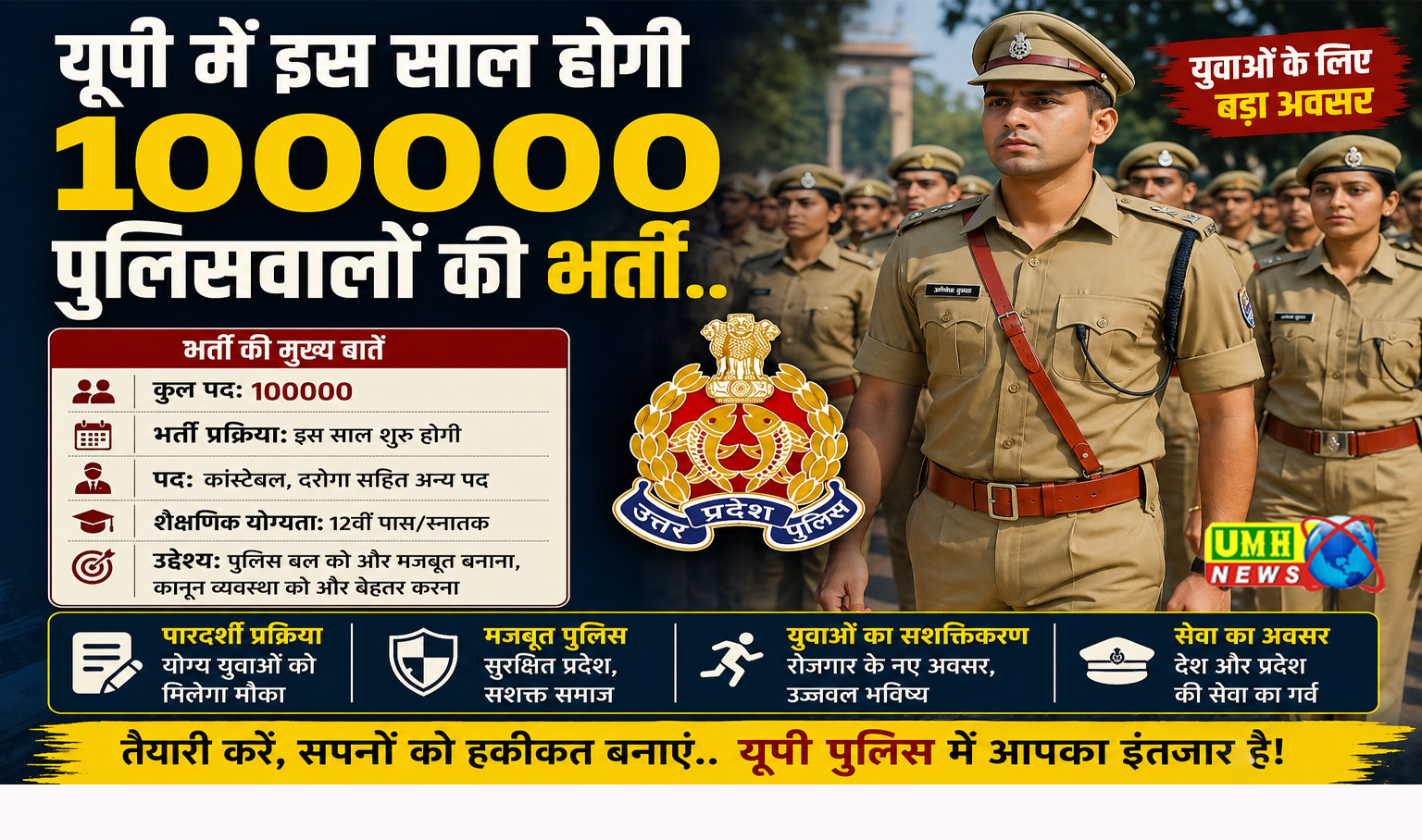 यूपी में इस साल होगी 100000 पुलिसवालों की भर्ती..