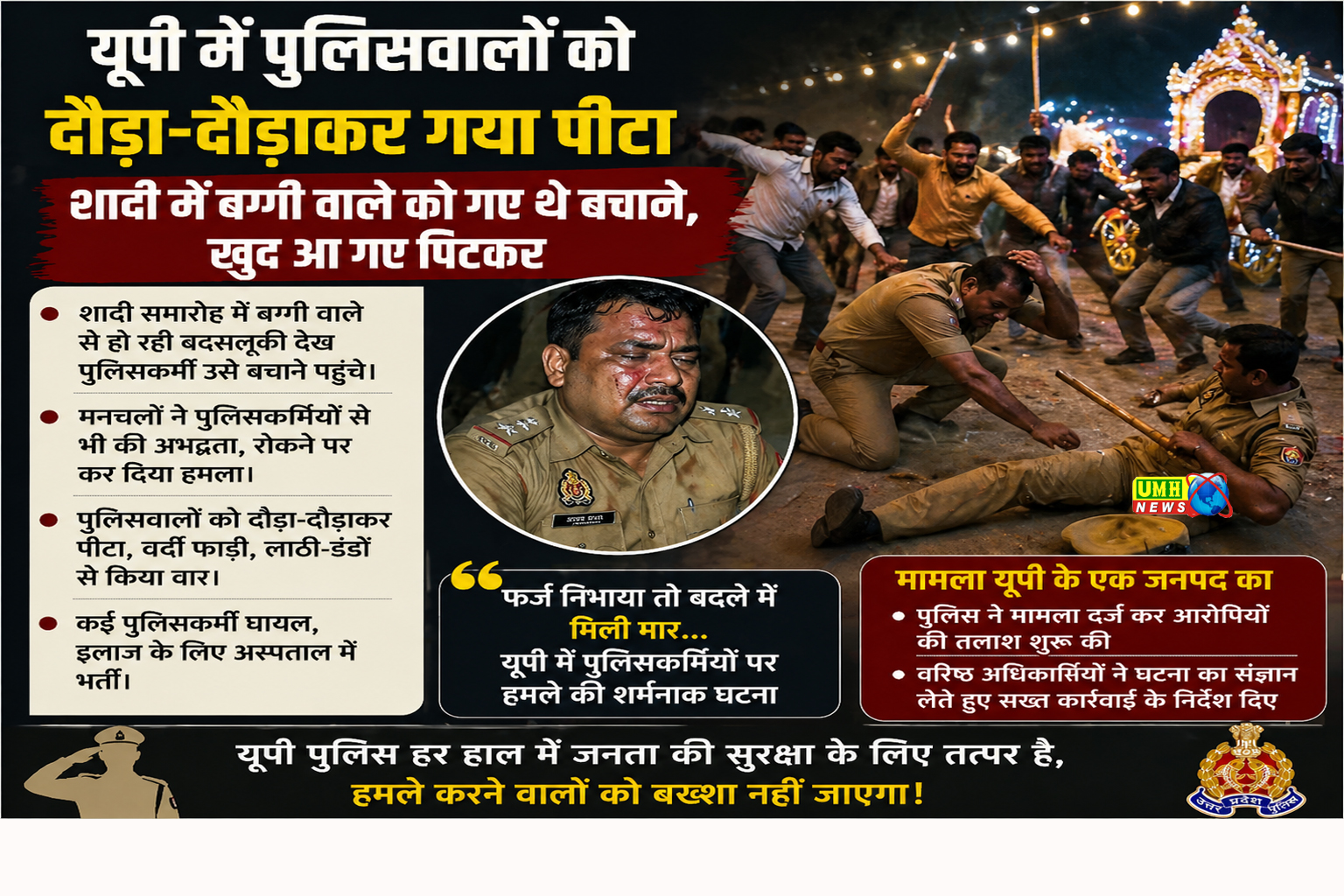यूपी : पुलिसवालों को दौड़ा-दौड़ाकर गया पीटा, शादी में बग्गी वाले को गए थे बचाने